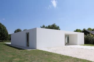 El color blanco predomina en todos los espacios, maximizando la sensación de amplitud y claridad. La cocina, completamente blanca, incluye un extractor cúbico a medida, diseñado más como una escultura que como un simple aparato funcional. En el exterior, un amplio jardín alberga una pileta que complementa la armonía de la arquitectura.